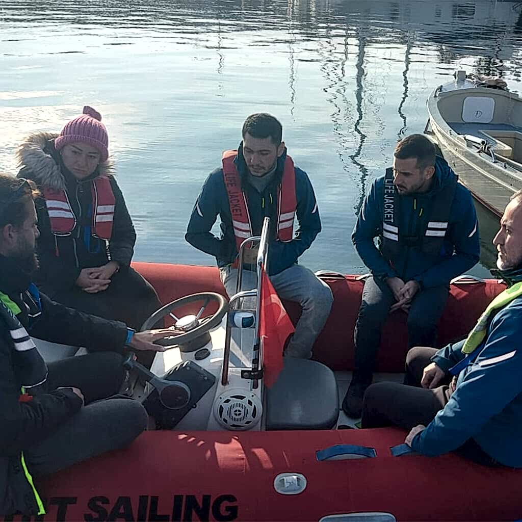Eğitimler teori giriş ile başlayıp, 2 saati “şişme bot ve dıştan takma motorlu tekne” üzerinde uygulama ve 2 saati “yelkenli tekne” üzerinde uygulama eğitimi olarak toplam 4 saat sürmektedir. Katılımcıların her biri bot kullanmakta ve bot yanaştırma manevraları çalışmaktadır.