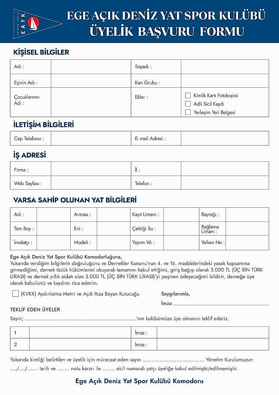 AİDAT EGE AÇIK DENİZ YAT KULÜBÜ HESABINA YATIRILIR.